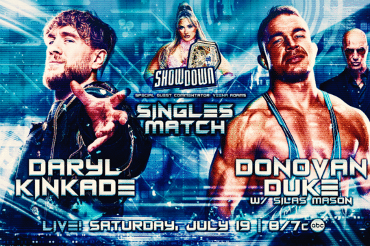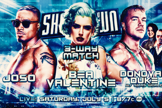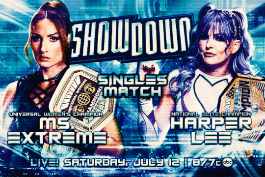 (EAW intro plays) (Showdown opens up with a recap of Midsummer Massacre. Ms. Extreme defeats Bea Valentine to retain the Universal Women’s Championship. Caroline defeats Vincent Mondrian. Joso is announced...
