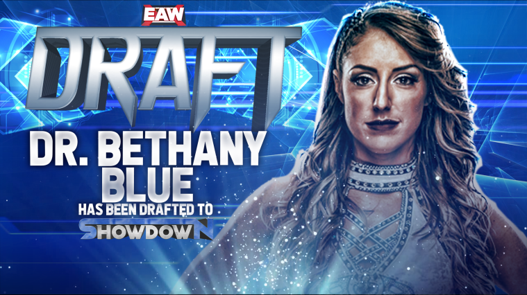 Eve: TLA is in complete control here in this Triple Threat and this is why TLA should be considered one of the hottest picks in this Draft. What else would you expect from a former World Champion? TLA smirks as he is trying to follow up on Myles… No, wait I spoke too soon! Dr. Bethany Blue takes out TLA with a sick chop block from behind, TLA did not see that coming for sure! Dr. Blue is now taking full advantage as she stomps away on TLA, making sure he stays on the mat and doesn’t get a chance to regroup. Myles tries to get back in the fight… but he gets blasted by a European Forearm by Bethany! Just like that Myles falls to the mat hard and Bethany is now in full control of the bout.