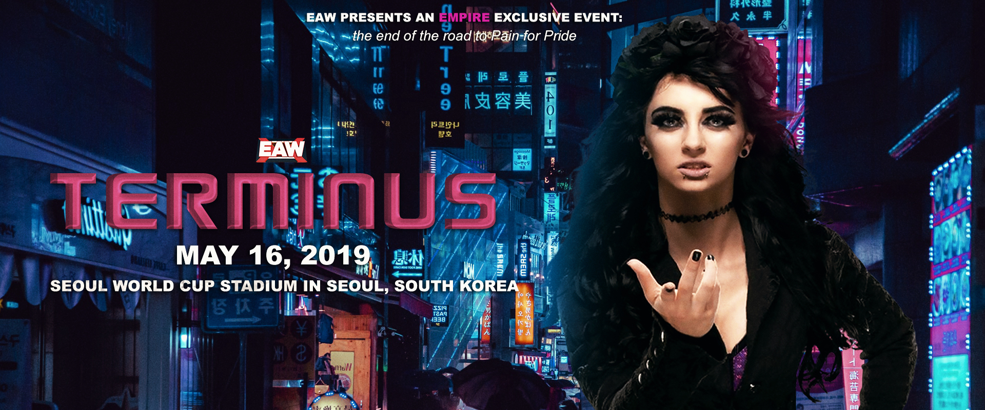 (It changes to Joso raising his arms in the air, then switches to Limmy Monaghan shooting with a Pistol hand gesture, then it shows Minerva with an evil smirk on her face and red eyes, twirling a black rose flanked by Danella Atlas and Selina Reyes also known as ToXXXin. Finally, it has Drake Armstrong all smug in his presence, posing, then it switches to the EAW World Champion, Adam Lucas with the title around his waist holding it up high.)